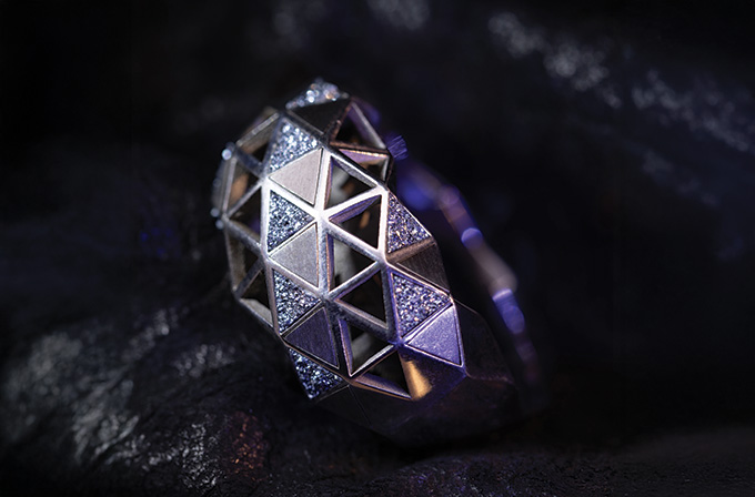 Designs combining osmium with diamonds are especially alluring, with customers seeking fresh ideas and inventive materials already favouring the metal. While diamonds sparkle from six metres in sunlight, osmium's reflective surface is visible from 30 metres, like a thousand little mirrors. Clauss is clear about one thing though — osmium is not replacing diamonds but should be seen as a complement or alternative.