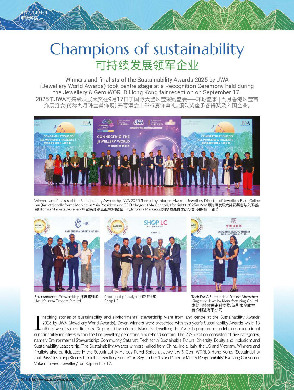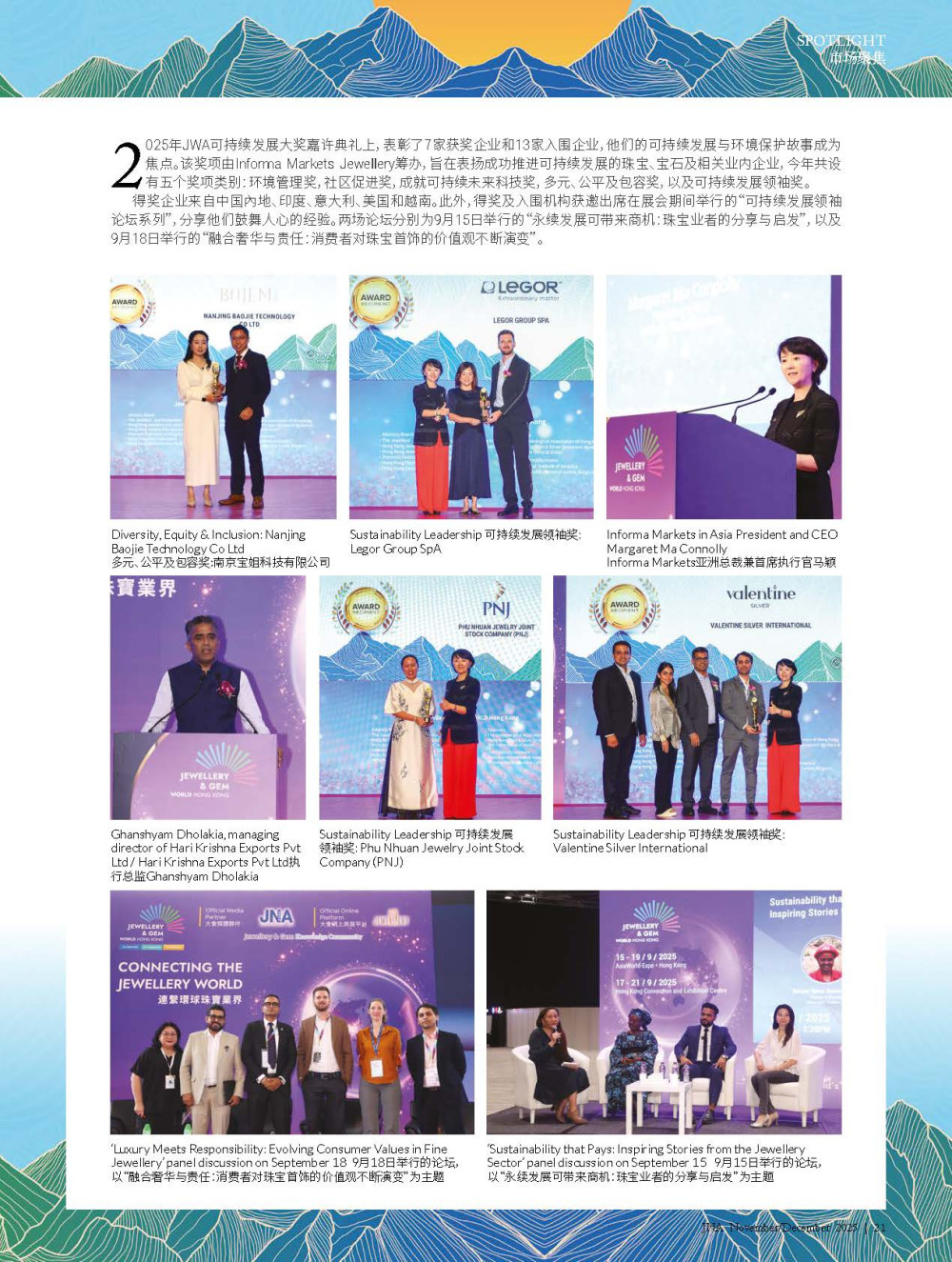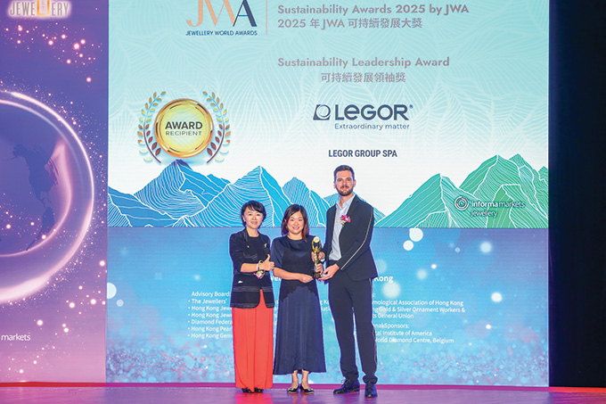 Winners and finalists of the Sustainability Awards 2025 by JWA (Jewellery World Awards) took centre stage at a Recognition Ceremony held during the Jewellery & Gem WORLD Hong Kong fair reception on September 17.