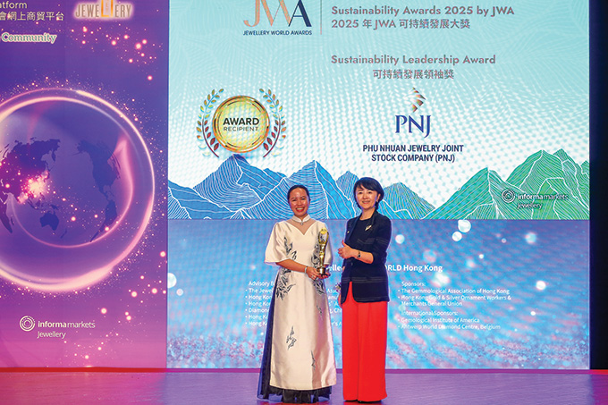 Inspiring stories of sustainability and environmental stewardship were front and centre at the Sustainability Awards 2025 by JWA (Jewellery World Awards). Seven winners were presented with this year’s Sustainability Awards while 13 others were named finalists. Organised by Informa Markets Jewellery, the Awards programme celebrates exceptional sustainability initiatives within the fine jewellery, gemstone and related sectors. The 2025 edition consisted of five categories, namely Environmental Stewardship; Community Catalyst; Tech for A Sustainable Future; Diversity, Equity and Inclusion; and Sustainability Leadership. The Sustainability Awards winners hailed from China, India, Italy, the US and Vietnam. Winners and finalists also participated in the Sustainability Heroes Panel Series at Jewellery & Gem WORLD Hong Kong: “Sustainability that Pays: Inspiring Stories from the Jewellery Sector” on September 15 and “Luxury Meets Responsibility: Evolving Consumer Values in Fine Jewellery” on September 17.