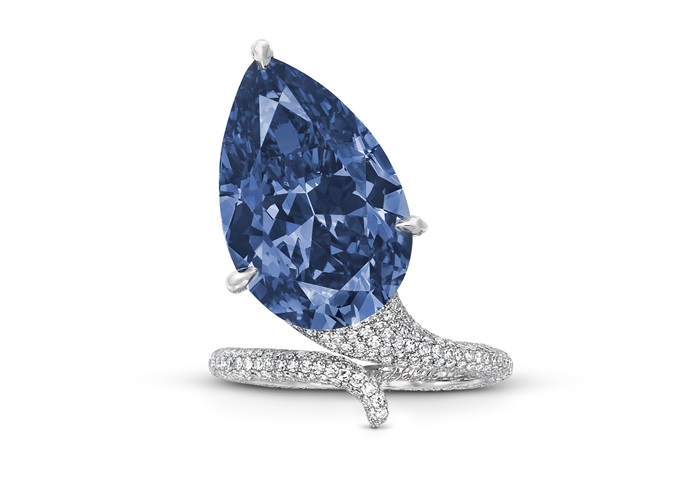 2. The Mediterranean Blue, an exceptional fancy vivid blue diamond weighing 10.03 carats, sold for CHF17.9 million (roughly US$21.5 million) at Sotheby’s High Jewelry sale in Geneva in May.