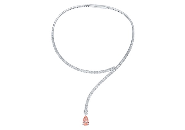Haute Couture Pink Souffle lab-grown diamond necklace with a pink pear-shaped lab-grown diamond centre stone by Smiling Rocks