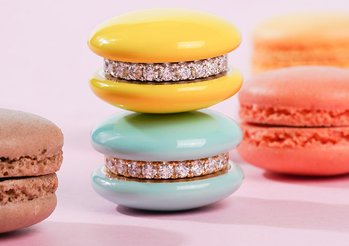 Elegance Jewellery International Ltd (EJI), meanwhile, is taking creativity to the next level with its signature Rainbow Macaron Collection, comprising multifunctional, macaron-inspired jewellery pieces in 18-karat gold. Each macaron in flawless, glossy enamel finishing and whimsical colours has a jewellery piece in between.